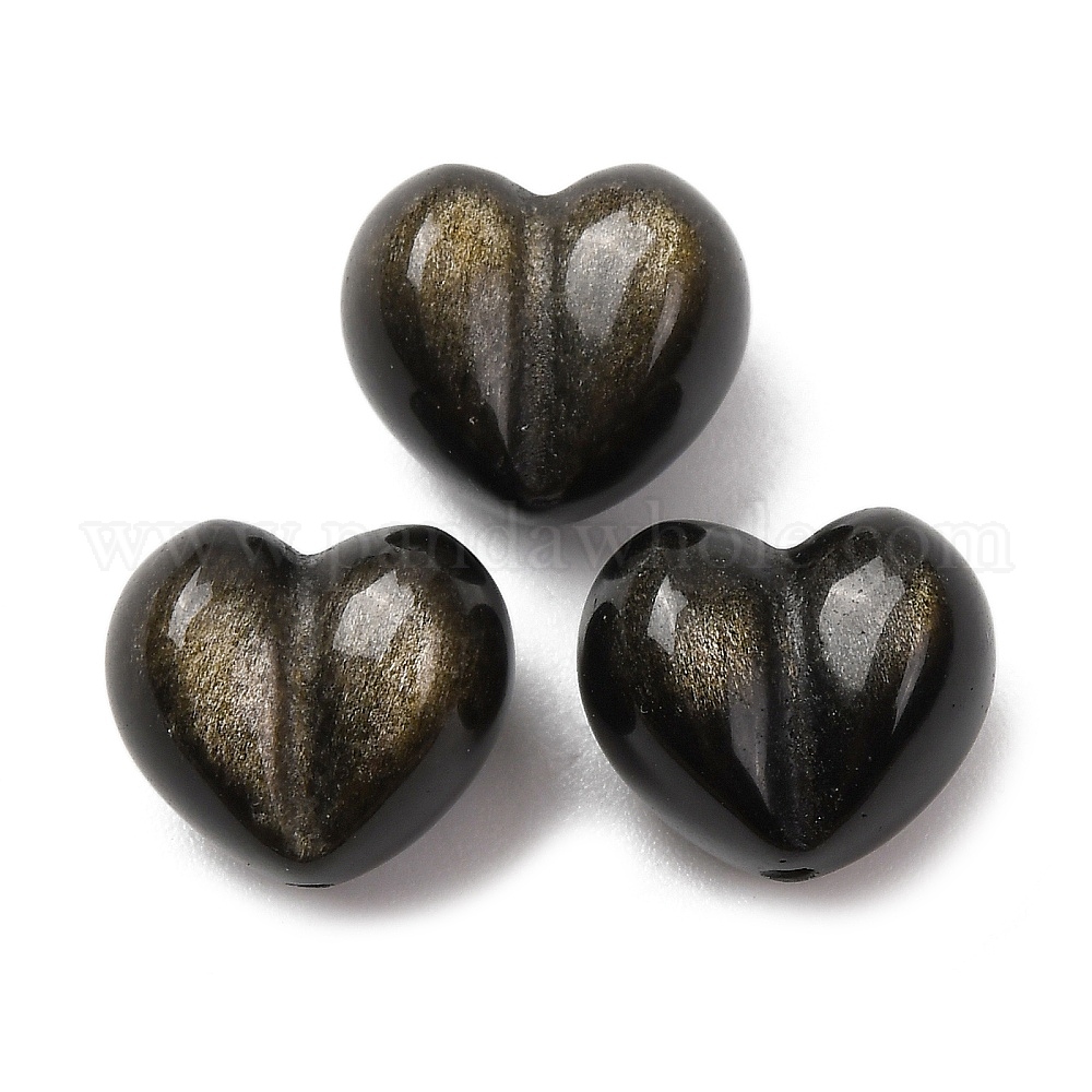 • Золотой Обсидиан Натуральный золотистый блеск обсидиан, сердце, 11x12x8.5 мм, отверстие : 1 мм