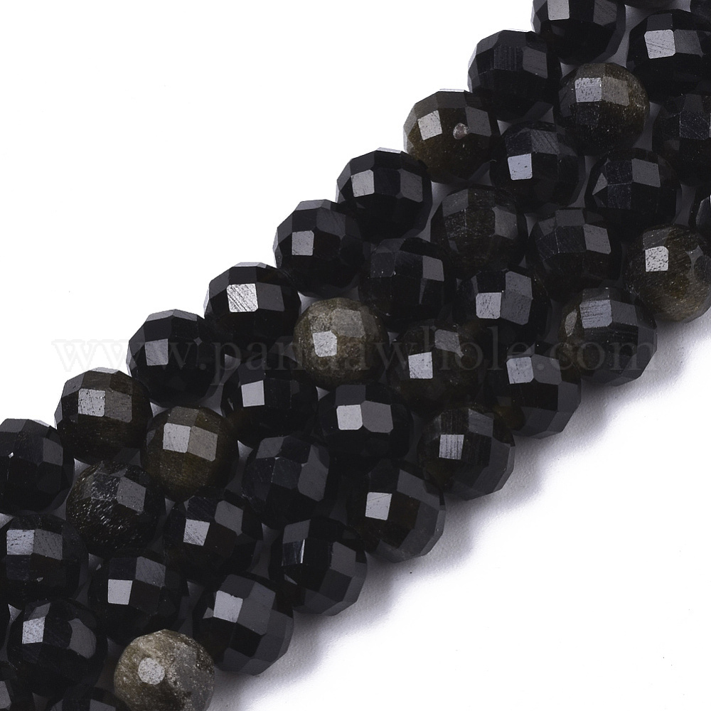 Естественный золотистый отлив обсидиан бисер пряди, круглые, граненый (64 граней)
