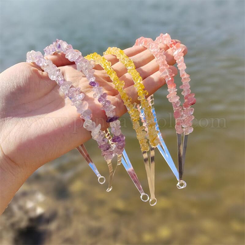 • Вишневый Кварц Двухрядные резинки для волос из вишневого кварцевого стекла, аксессуары для волос для невесты, с металлическим обручем для волос, 150x125x23 мм