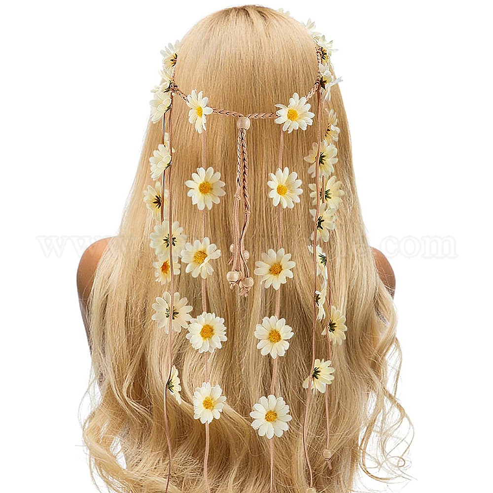 2шт. ткань подсолнух хиппи ободок цветочный венок, свадебная вечеринка пляж свадебные декоративные аксессуары для волос украшение для волос в виде лозы