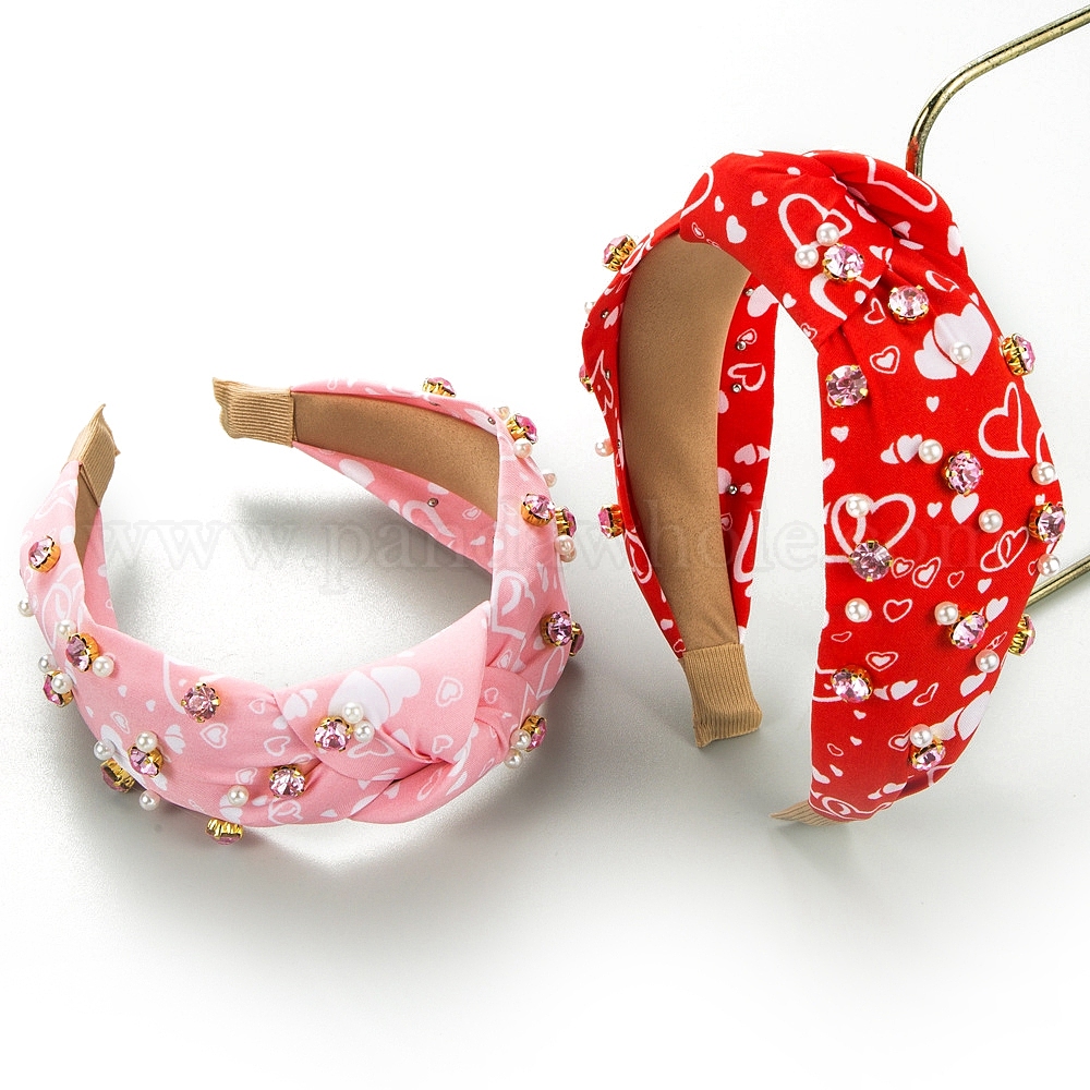 Резинки для волос с жемчугом и стразами ко Дню святого Валентина, Тканевые аксессуары для волос с широким узлом для женщин и девочек