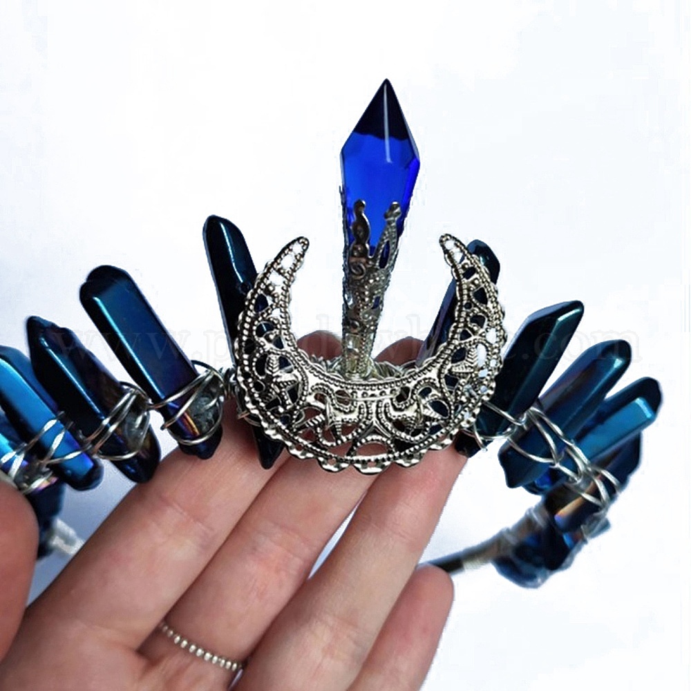 • Платина Резинки для волос из натурального синего кристалла, повязки для волос в виде лунной короны, для женщин девушек, платина, 350x150 мм