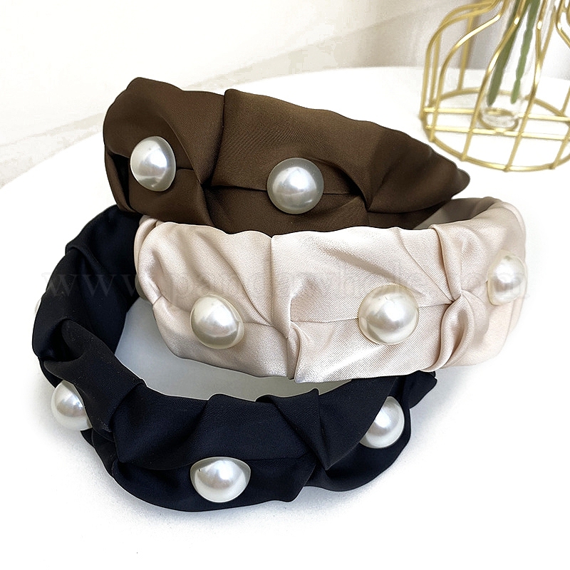 Ткань ленты для волос, аксессуары для волос для женщин и девочек, с имитацией жемчужина бисера