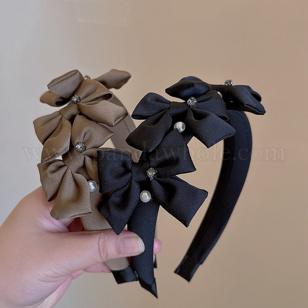 Повязка на голову из шелковой ткани, страз и пластикового жемчуга, бантом