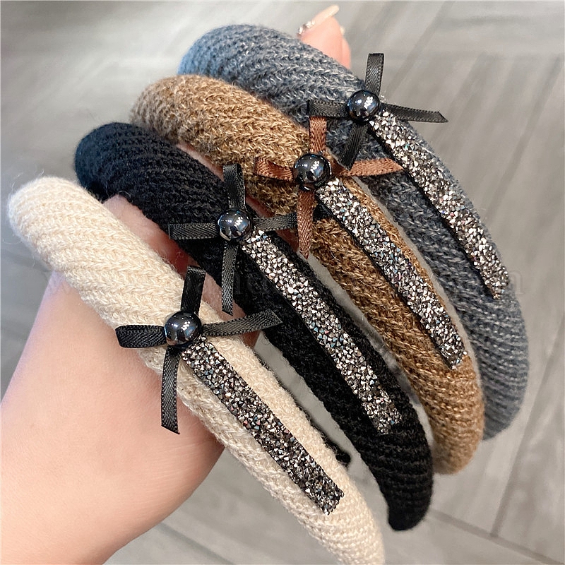 • Темно-Серый Тканевые резинки для волос для женщин и девочек, со стразами, темно-серый, 15 мм