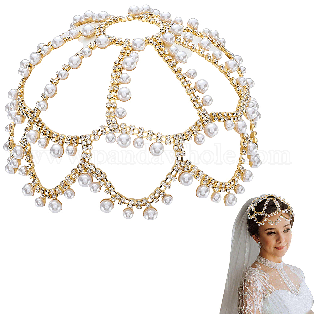 Пластиковые повязки на голову с жемчужной сеткой, со стразами, аксессуары для волос для женщин и девушек
