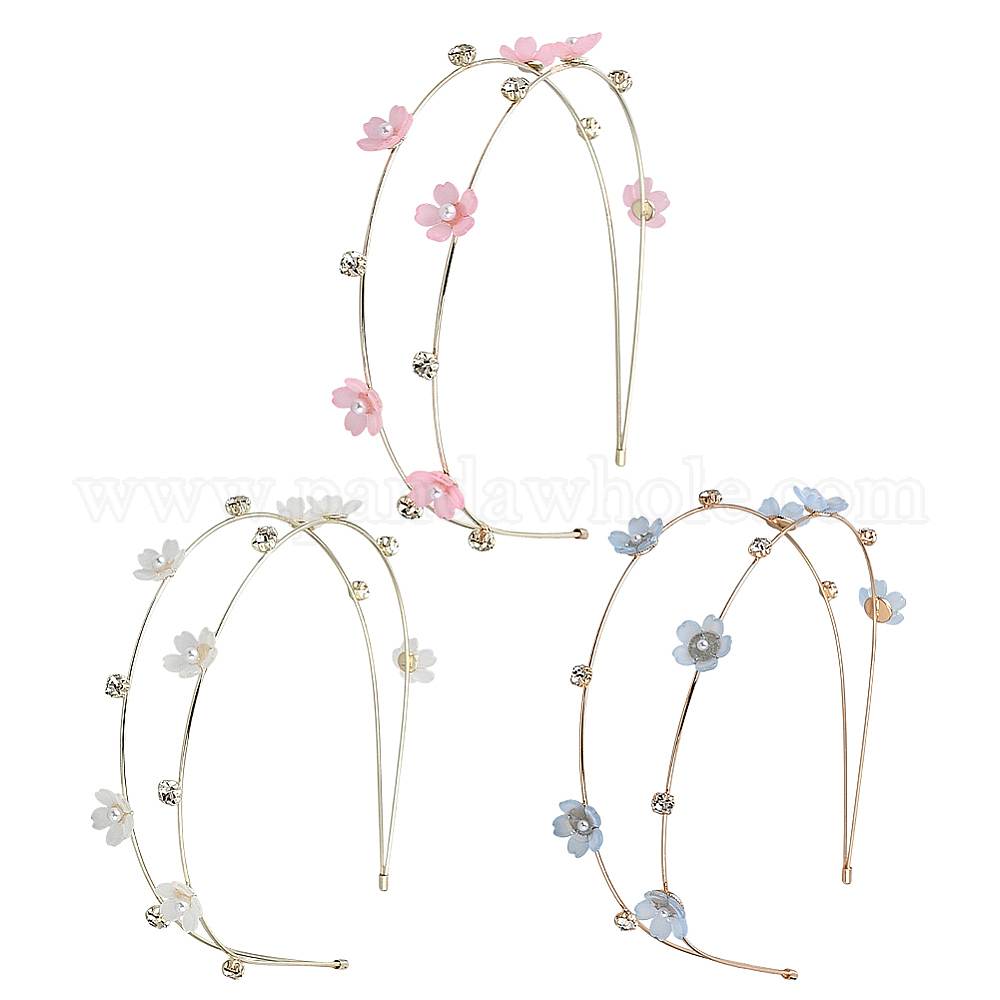 3 шт. 3 цветные резинки для волос из цинкового сплава и АБС-пластика со стразами для женщин и девочек, цветок, золотые