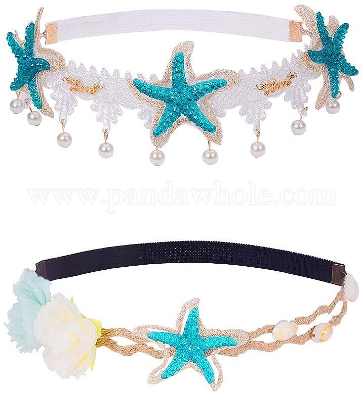 Обруч для волос ручной работы из кружева, с конопляным шпагатом и натуральной ракушкой/акриловым жемчугом
