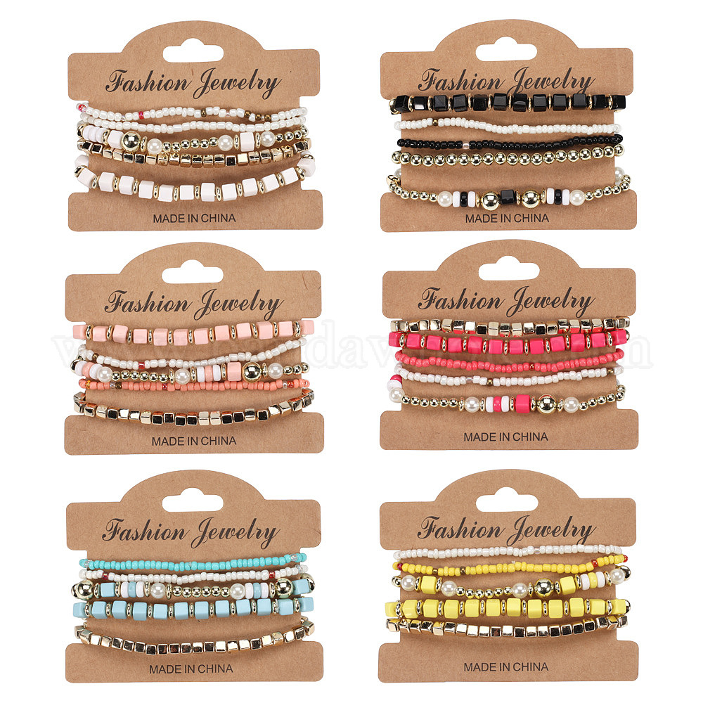 • HY-2560-F Yellow Богемный браслет из многониточного бисера с эластичностью и золотой отделкой