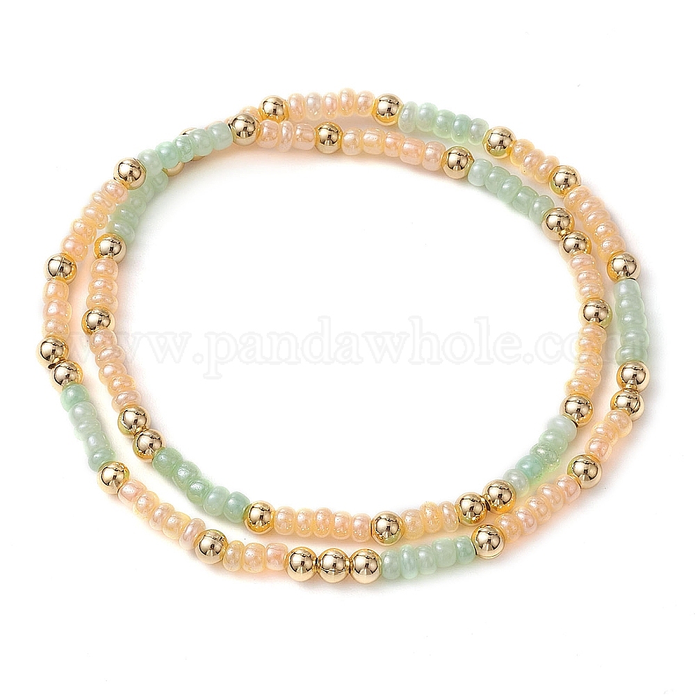 Двухцветные стеклянные бусины и эластичные браслеты из латунных бусин, оберточные браслеты для женщин, бисквитный и бледно-зеленый