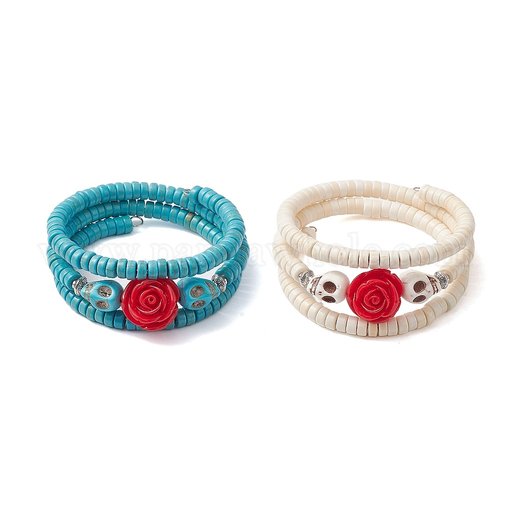 Наборы браслетов из смолы и синтетической бирюзы, Хэллоуин браслеты, Череп и цветок