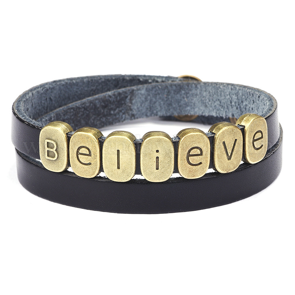 Браслеты из натуральной воловьей кожи, со сплавочной фурнитурой античного бронзового тона, слово верить