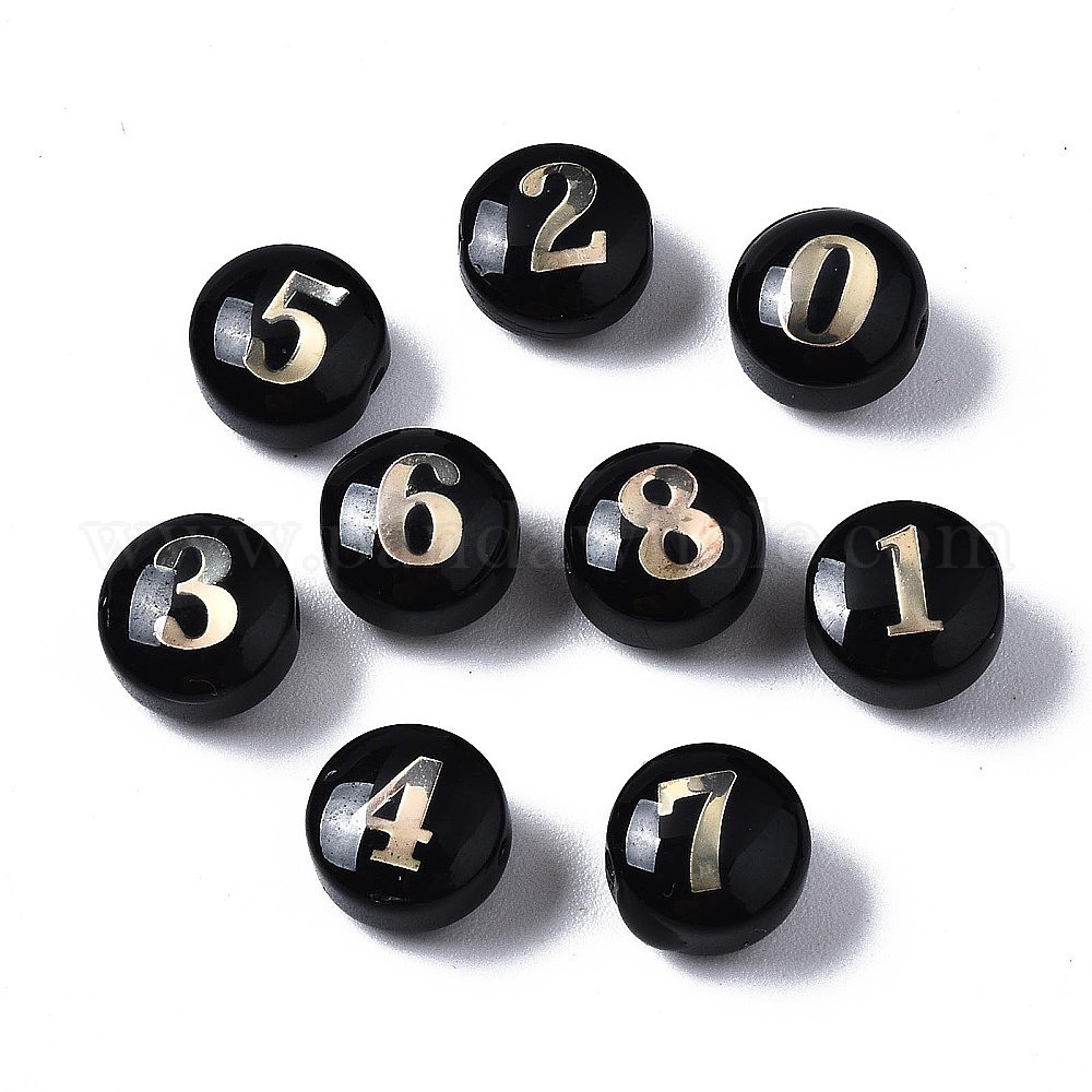 Бусины лэмпворк , золотой металл обвитыми, плоские круглые с номером