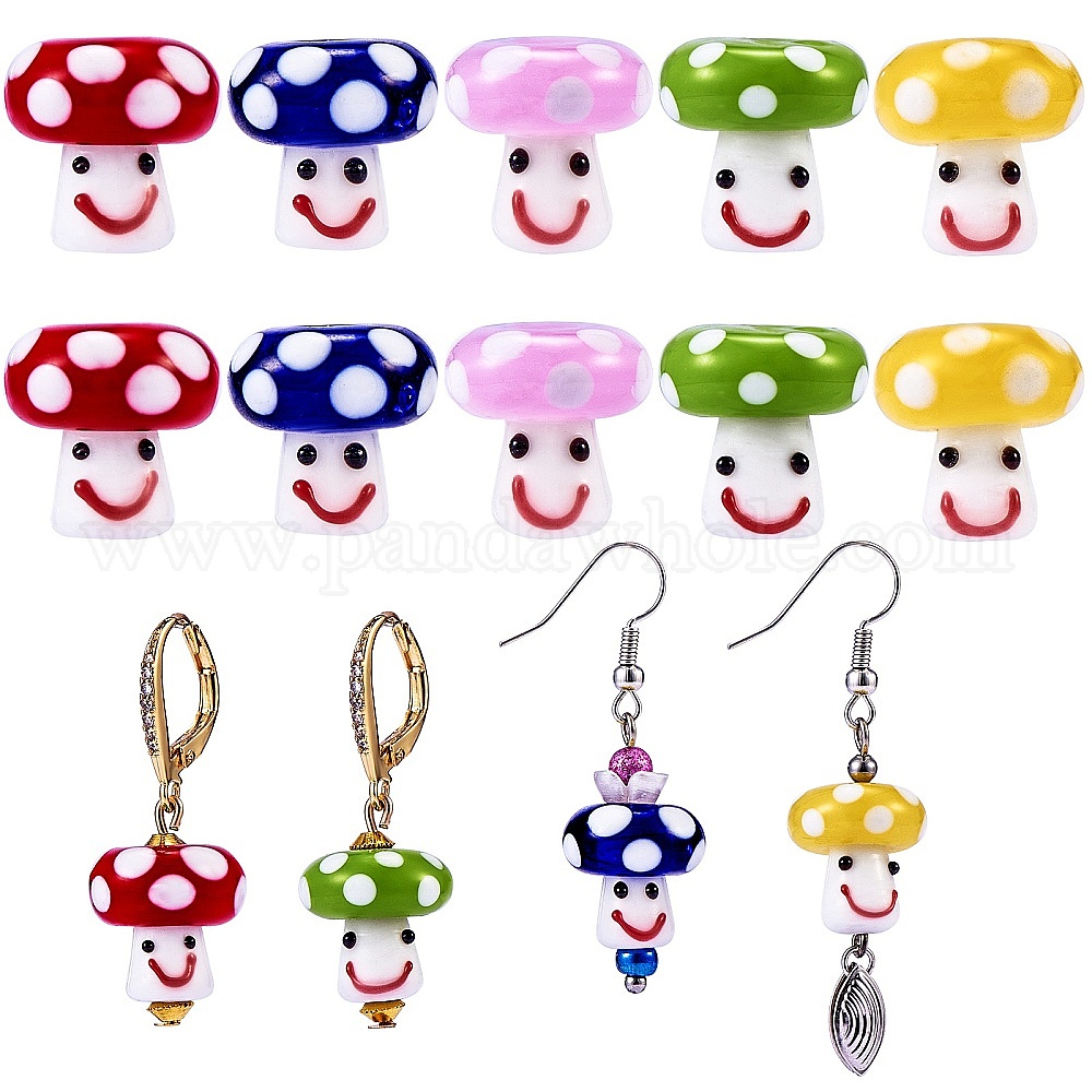 10 шт 5 цвета бусины лэмпворк ручной работы, улыбающееся лицо грибные бусы