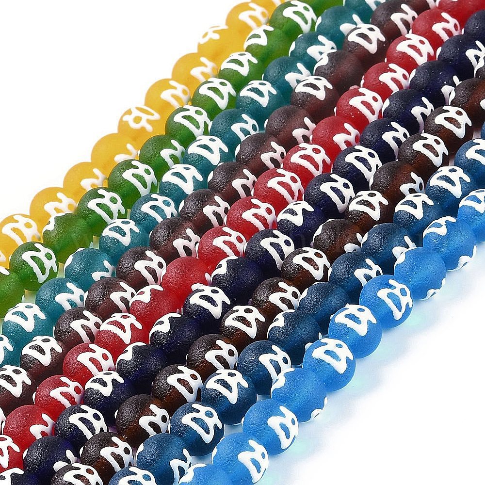 • (52) Непрозрачная лаванда Бусины лэмпворк , Имитация бусин Дзи в тибетском стиле, круглые, разноцветные, 10 мм, отверстие : 1.6 мм