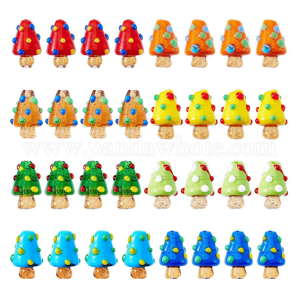 32шт 8цвета бусины ручной работы лэмпворк неровные, грибные прелести