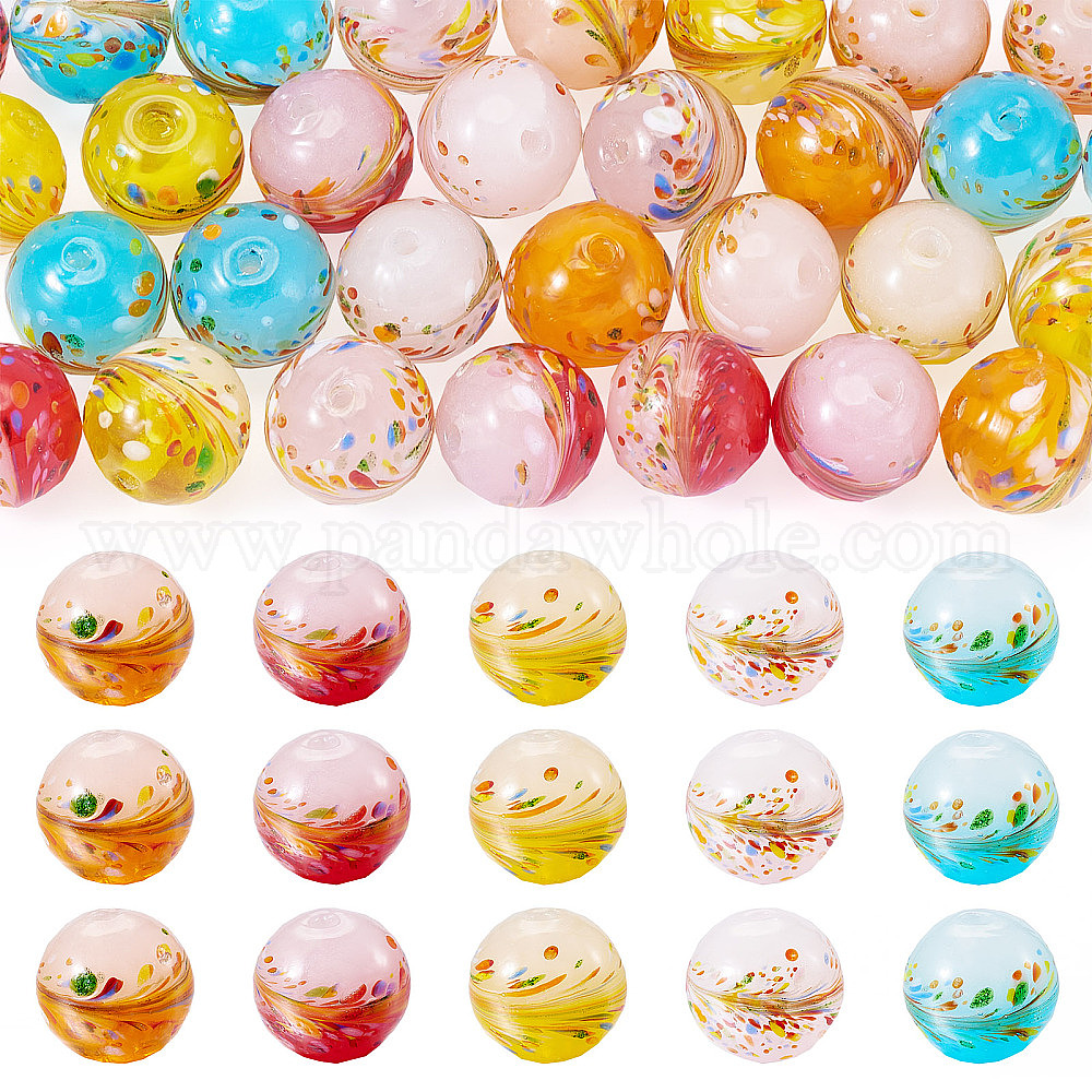 30 шт 5 цвета бусины лэмпворк ручной работы, круглая с цветком, два тона