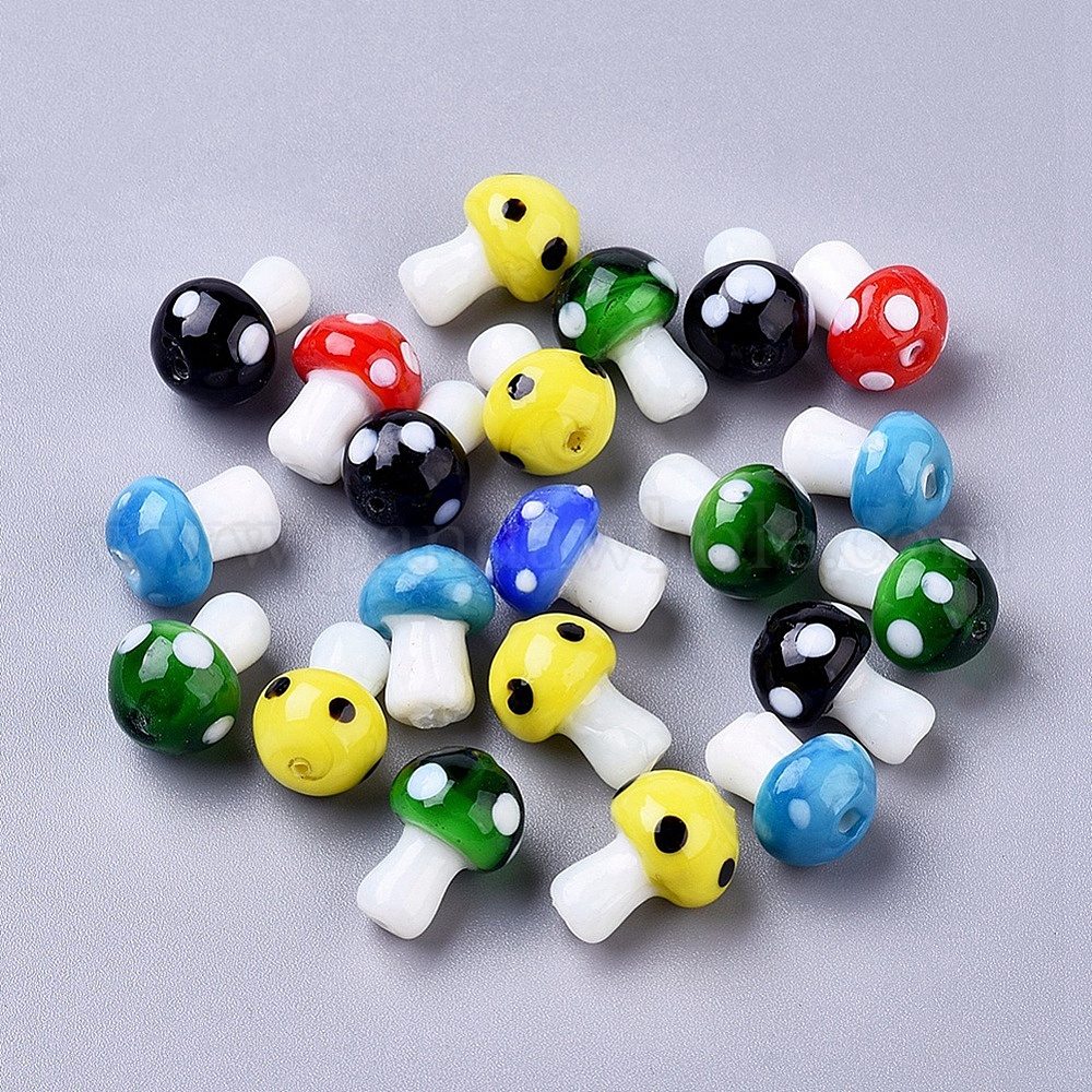 Гриб ручной Lampwork бисер пряди, 16x12 мм, отверстие : 2 мм, около 20 шт / нитка, 13.7 дюйм