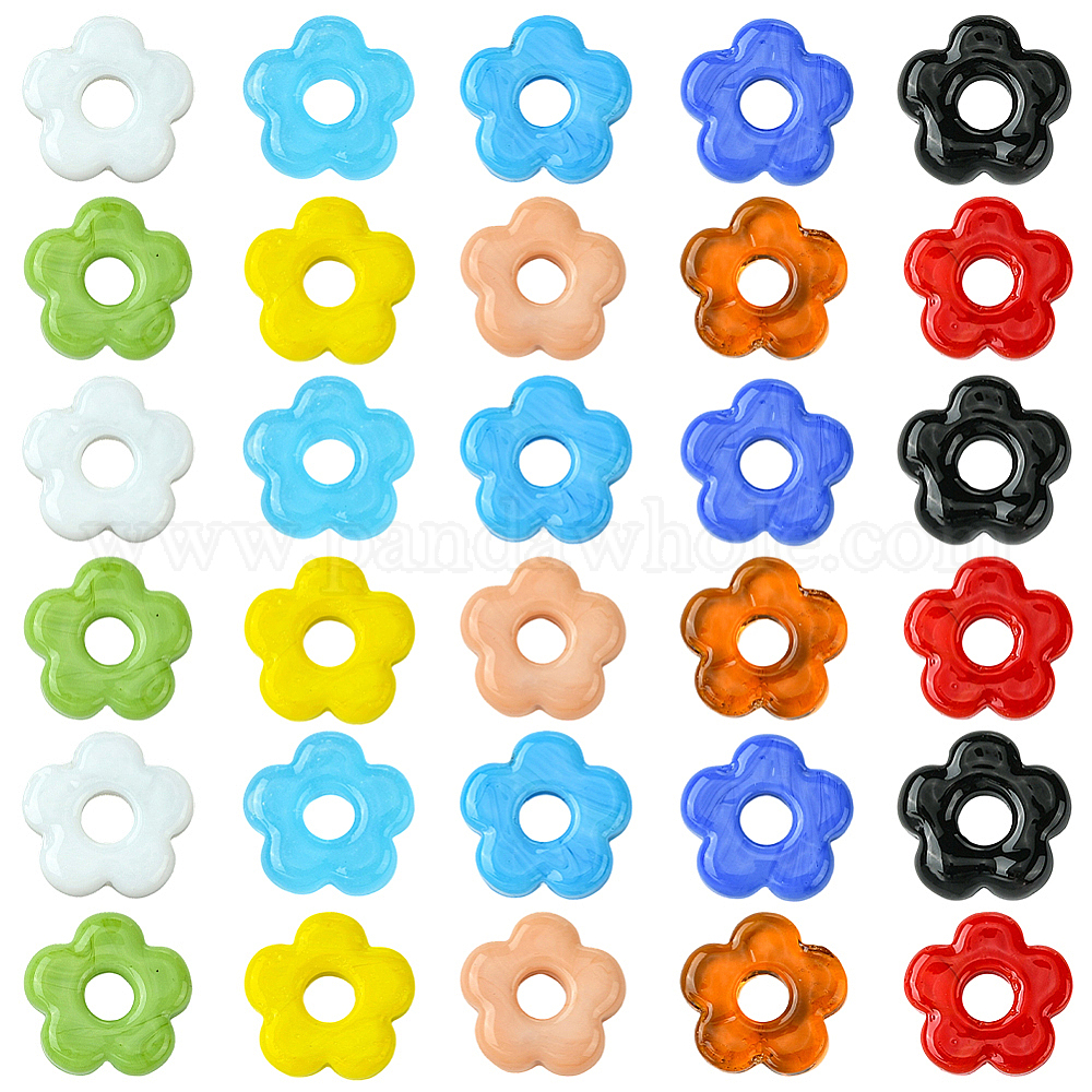 30 бусины лэмпворк ручной работы, цветок (034HGR)