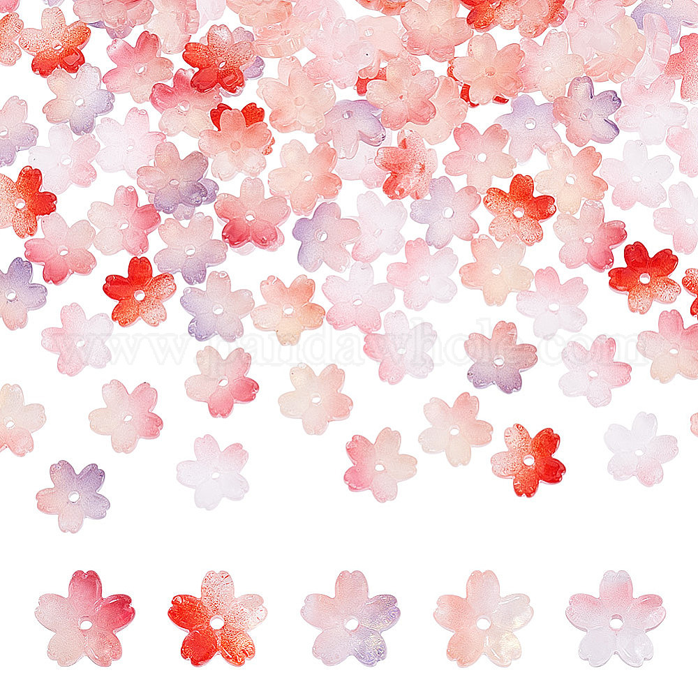 150 шт. 5 цвета, бусины ручной работы, прозрачные, лэмпворк, сакура, два тона