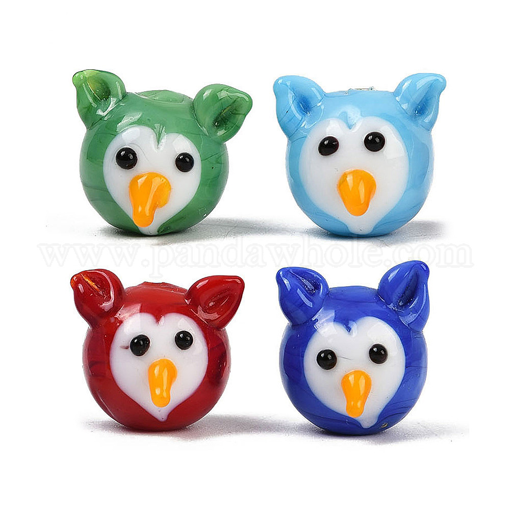 • (52) Непрозрачная лаванда Бусины лэмпворк , сова, разноцветные, 14~14.5x14~16.5x15~16.5 мм, отверстие : 1.6 мм