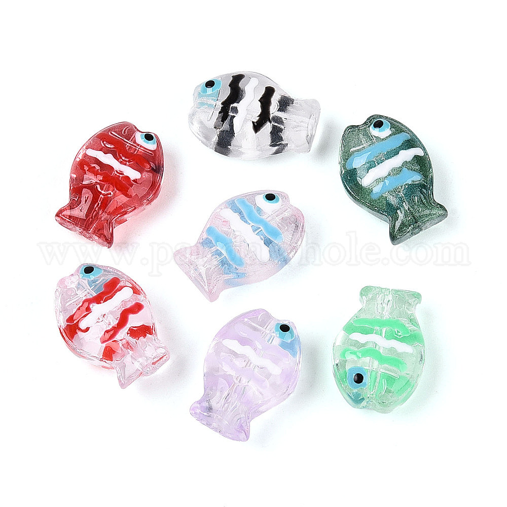 • (52) Непрозрачная лаванда Бусы лэмпворк ручной работы, рыба, разноцветные, 14~14.5x10~10.5x6~7 мм, отверстие : 0.7 мм, около 20 шт / нитка, 11.42 дюйм (29 см)