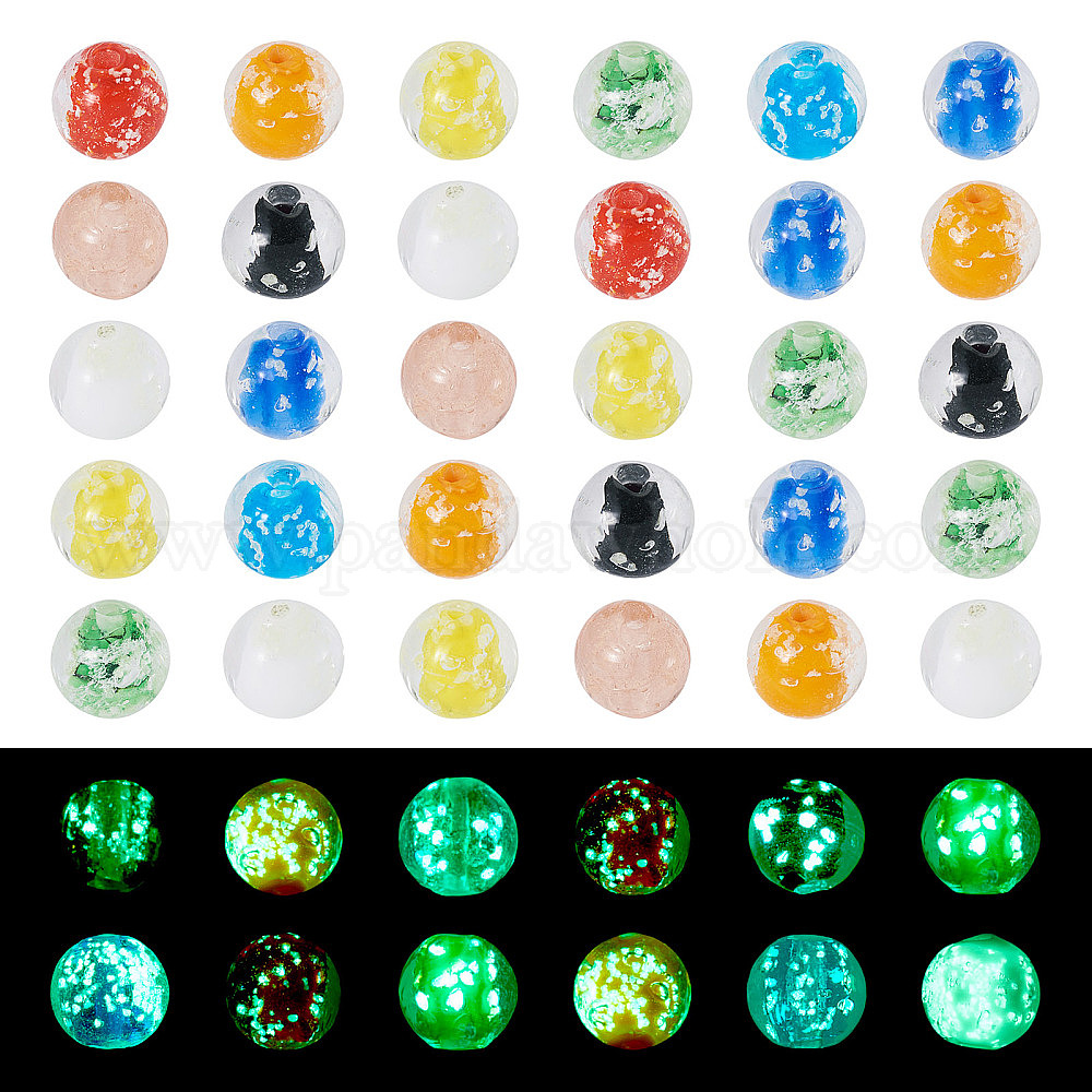50 шт. Светящиеся бусины лэмпворк ручной работы., круглые, светится в темноте