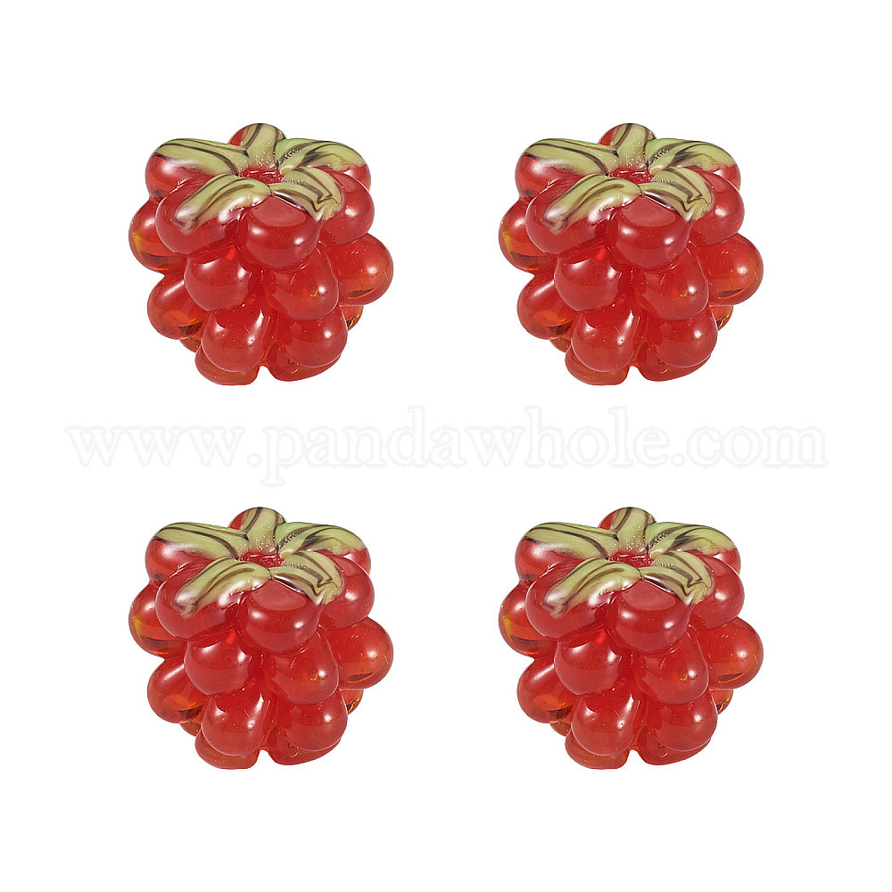 4 бусины лэмпворк ручной работы, малина