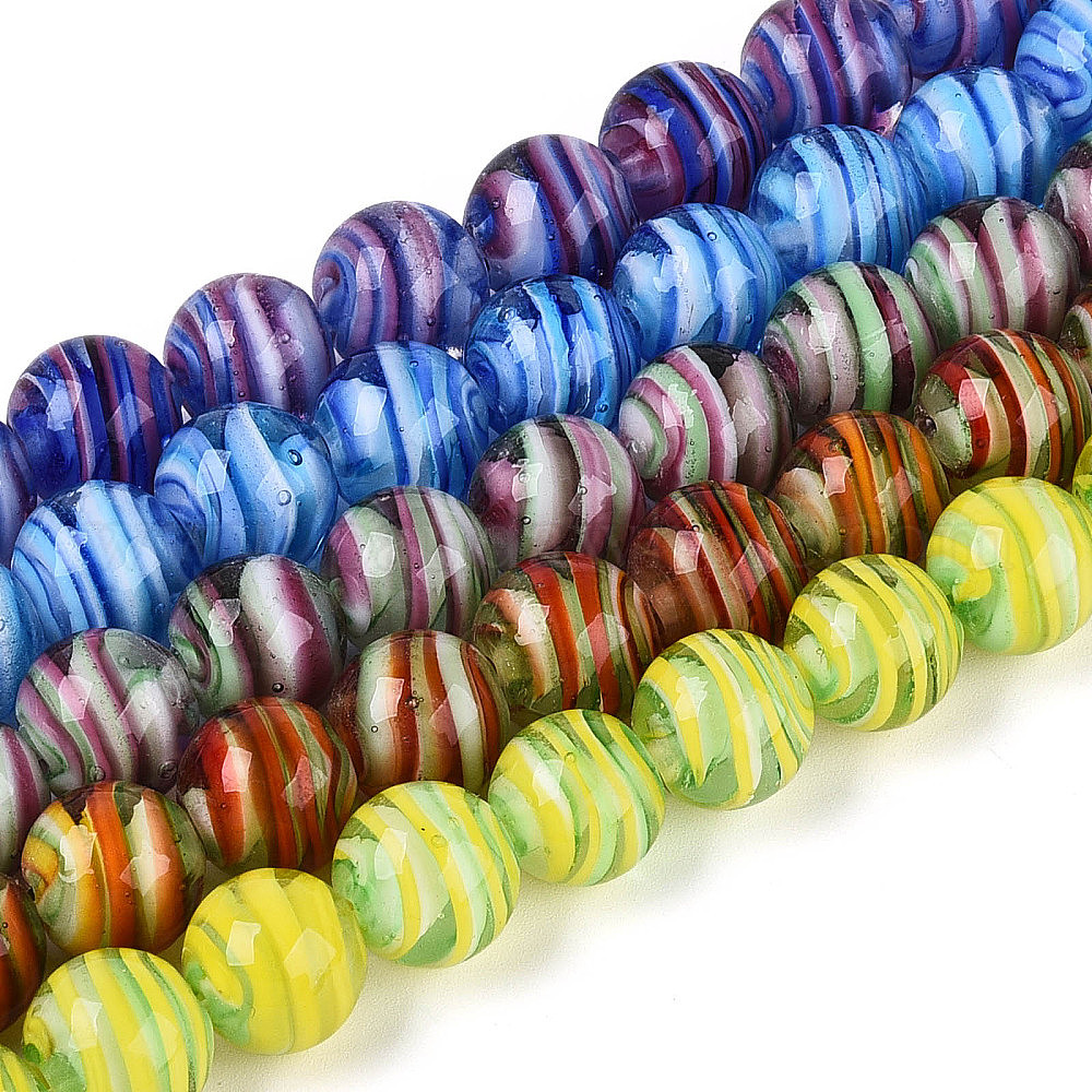 Бусы лэмпворк ручной работы, круглые, два тона (039F8K)