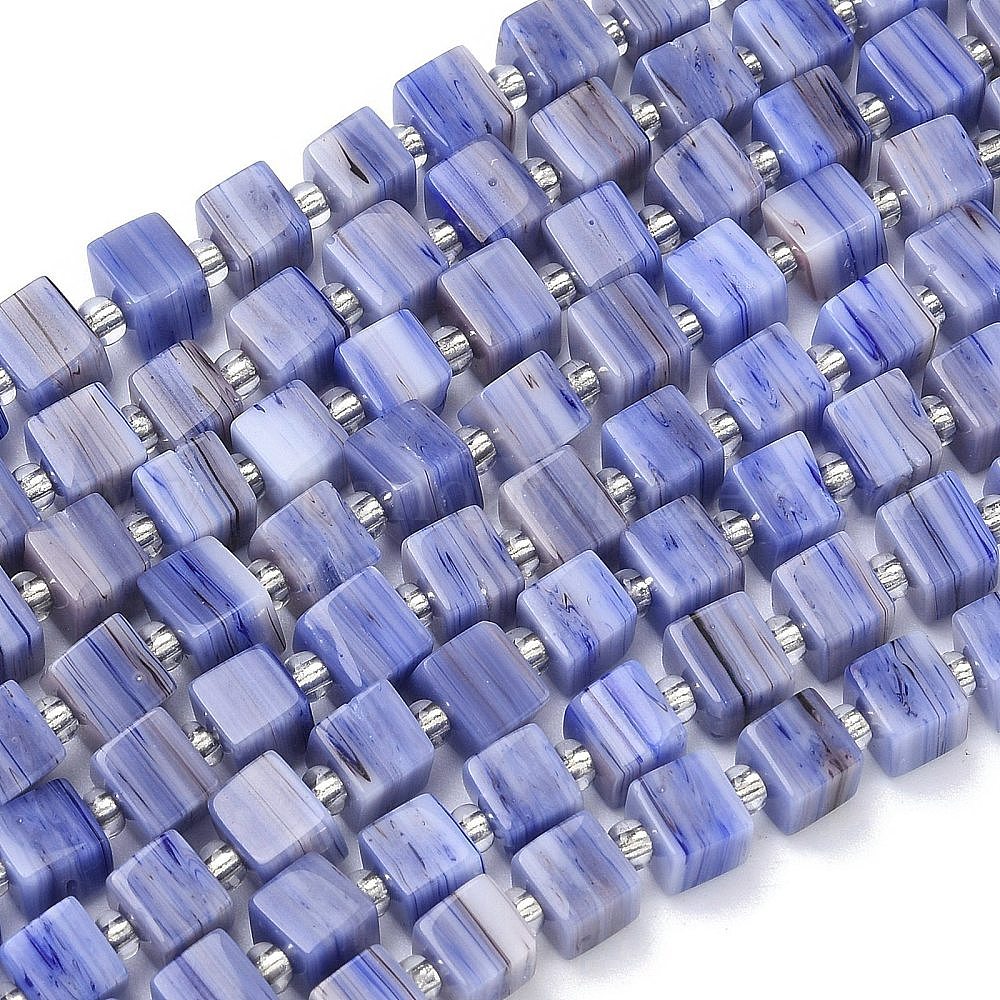 Бусины лэмпворк , кубические, со стеклянными бусинами-спейсерами