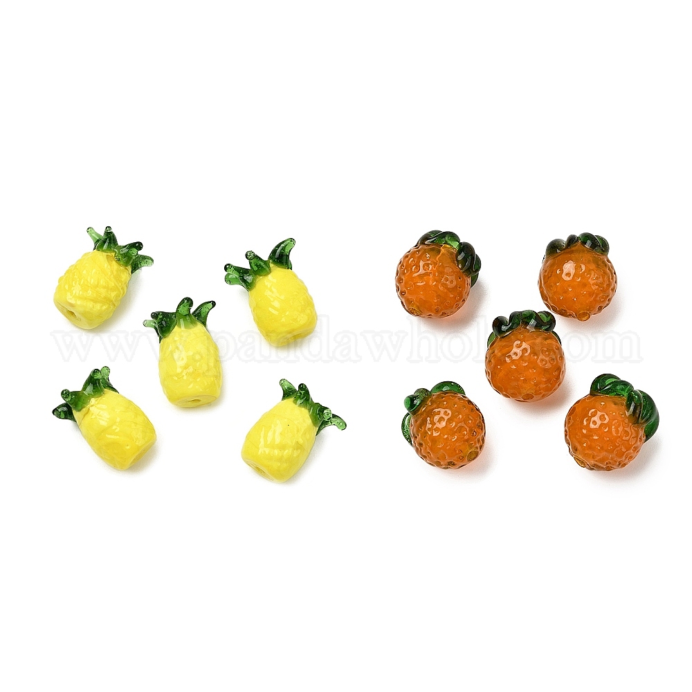 • Ананас Бусины лэмпворк , фрукты, ананас, 18.5~19.5x15~17.5x15.5~16.5 мм, отверстие : 1.8~2 мм