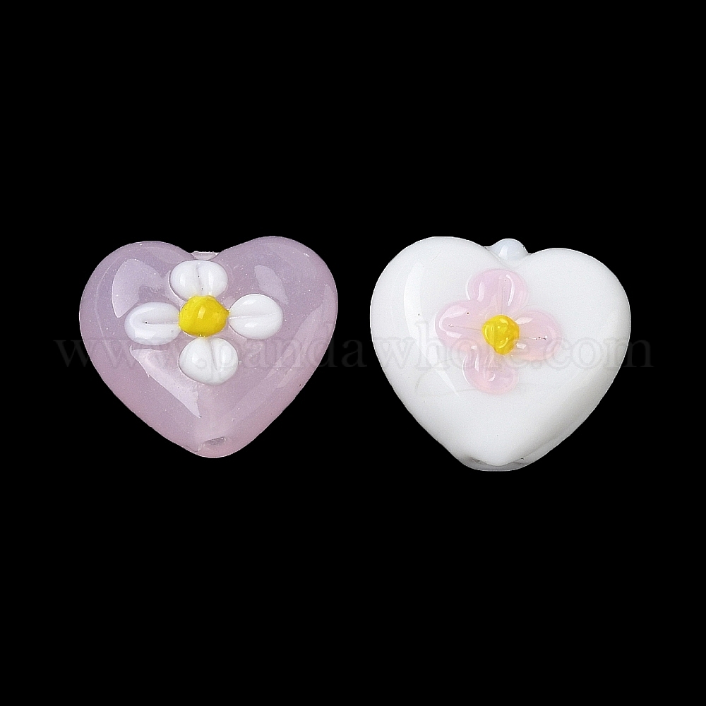 • Белый Эмалевые бусины ручной работы в технике лэмпворк, бусины ручной работы, Сердце со цветками , белые, 15x16.5x8~9 мм, отверстие : 1.4 мм