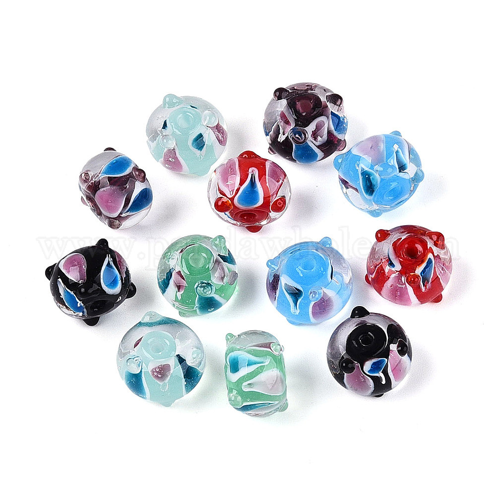 • Малиновый Бусины лэмпворк , бусина в бусине, шероховатая рондель с узором в виде капель, малиновый, 13~14x9~10 мм, отверстие : 1.2~1.8 мм