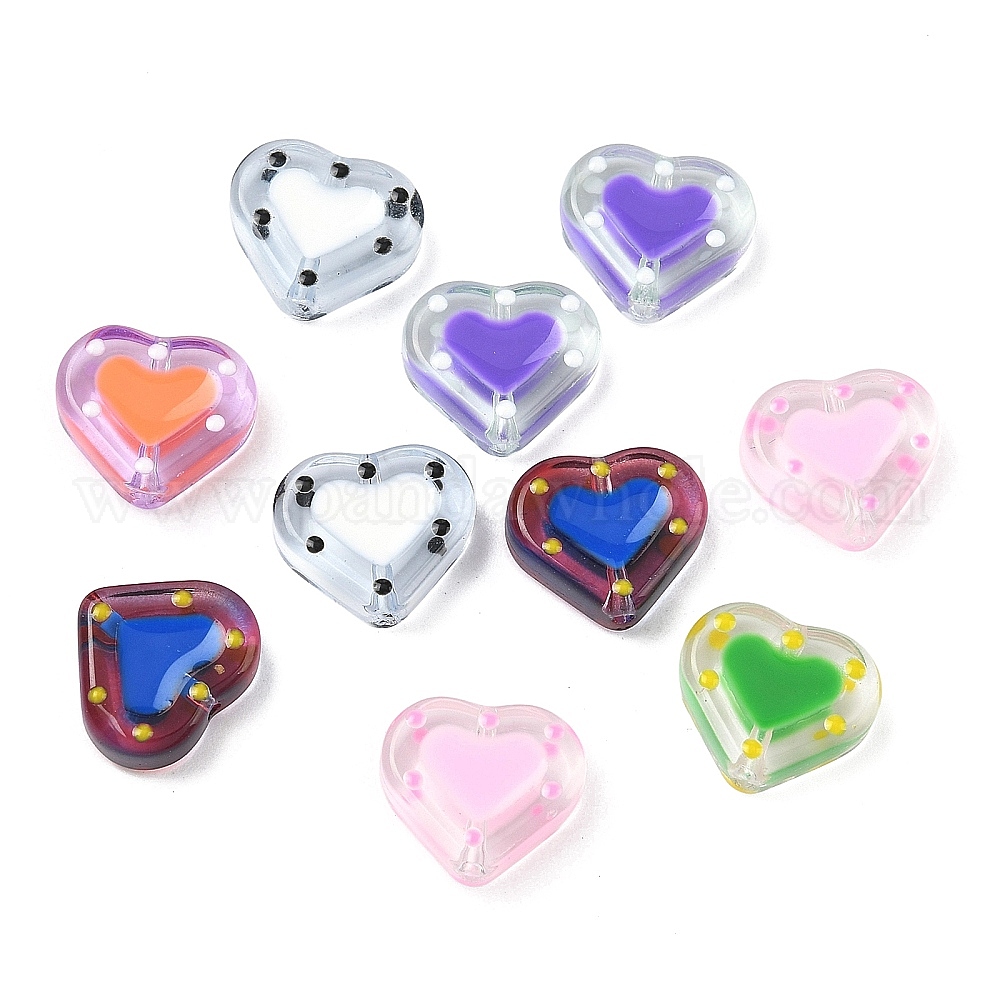 • (52) Непрозрачная лаванда Бусины лэмпворк , сердце, разноцветные, 13x15x6 мм, отверстие : 1.4 мм