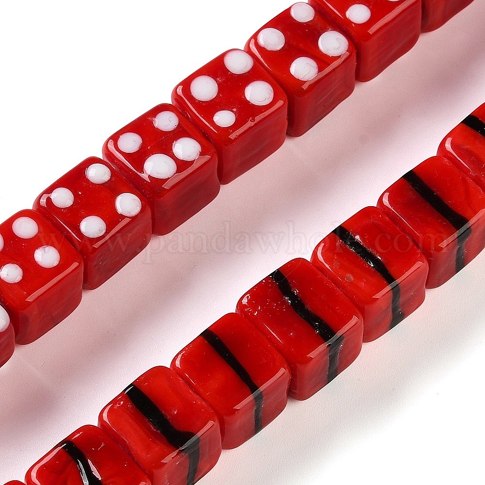 • Красный Бусины лэмпворк , куб с точкой, красные, 10~10.5x10~11x10~11 мм, отверстие : 1.8 мм