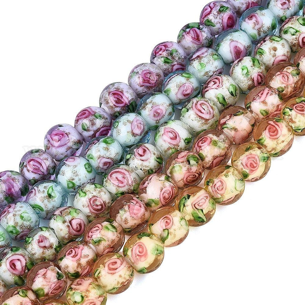 Светящиеся нити из бусин ручной работы, изготовленных методом выдувания стекла и с использованием блестящей пудры., круглые, с внутренним цветок, светится в темноте