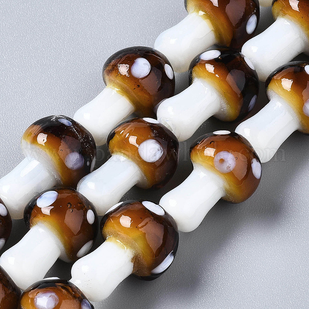Бусы лэмпворк ручной работы, грибовидная форма с белым пятном