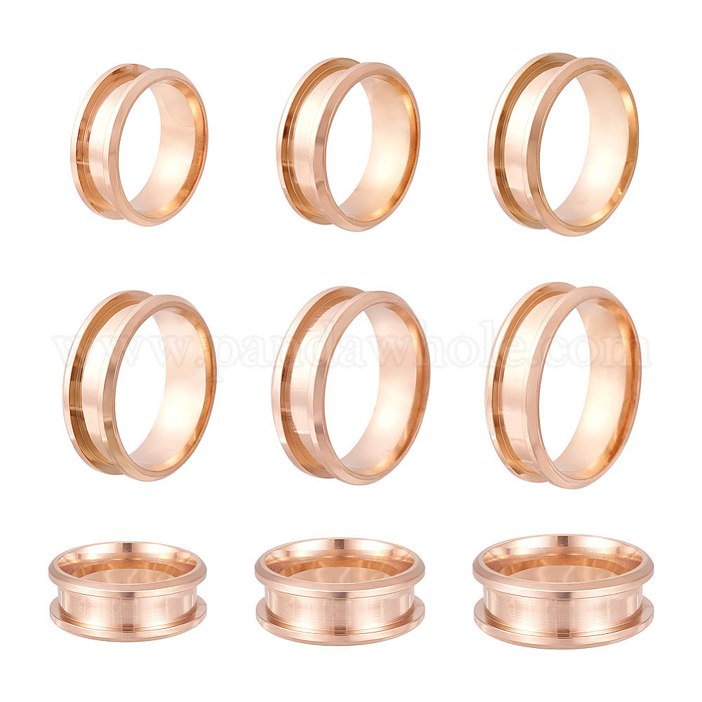 • Розовое Золото 6шт 6 размер 201 настройки кольца для пальцев с канавкой из нержавеющей стали, кольцевой сердечник, розовое золото , американский размер 6 1/2~12 3/4(16.9~22мм), 1 шт / размер