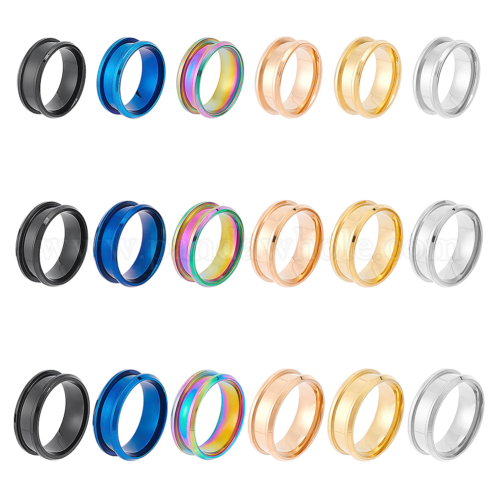 18 шт. 18 стили 201 нержавеющая сталь рифленые кольца для пальцев, кольцевой сердечник, для изготовления инкрустации
