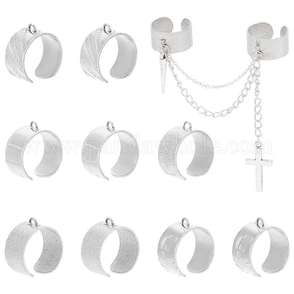 10 шт. 5 стили 304 компоненты открытого манжетного кольца из нержавеющей стали, кольцо петли