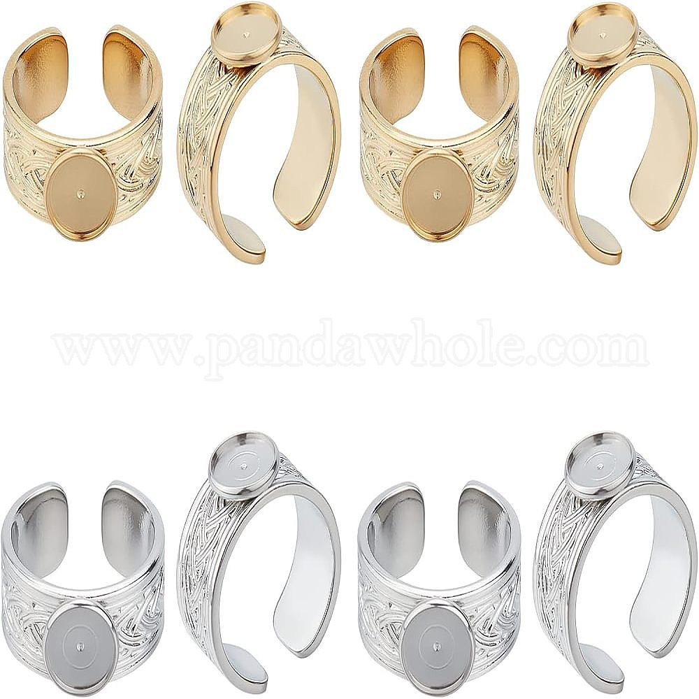 4 шт. 2 цвета 304 фурнитура для открытого манжетного кольца из нержавеющей стали, настройки пед ринга, плоско-круглые (02D5Z4)
