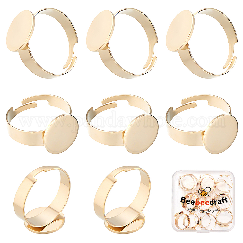 20шт. регулируемые 304 компоненты колец из нержавеющей стали, латунная фурнитура платформы для кольца, плоско-круглые