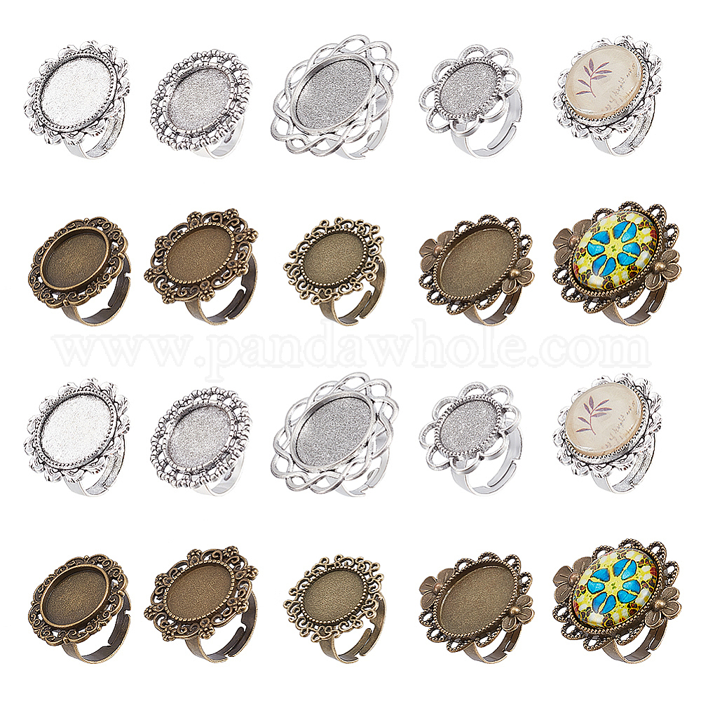 32 шт 8 стиль винтаж регулируемые железные компоненты перстня в виде цветка с оправой из сплава кабошона