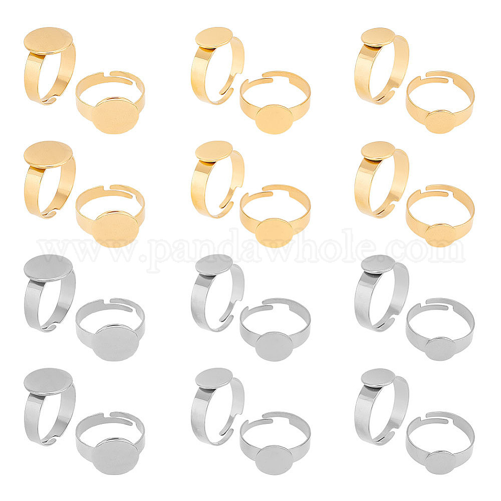 24 шт. 6 стиль регулируемый 304 компоненты кольца для пальцев из нержавеющей стали, латунная фурнитура платформы для кольца, плоско-круглые