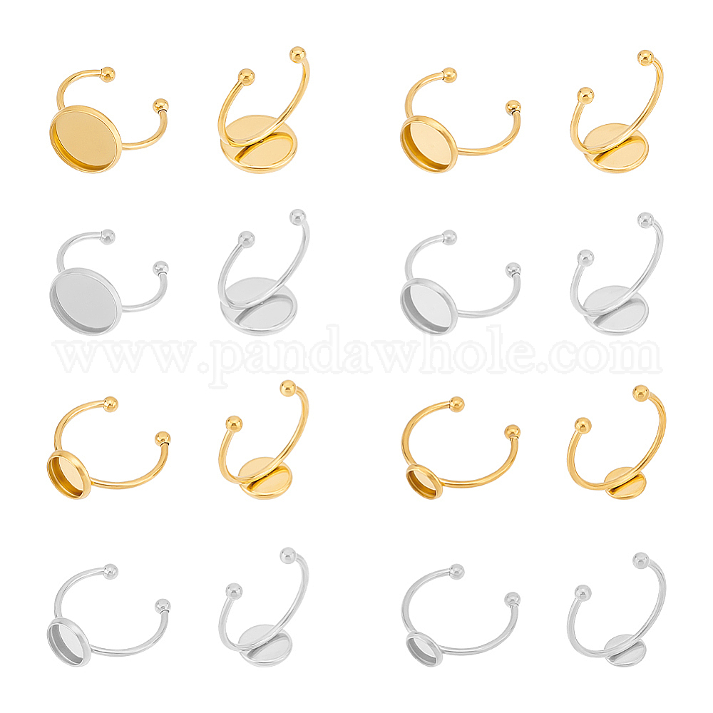 24шт 8 стили кольцевые компоненты из нержавеющей стали, настройки основания кольца колодки, плоско-круглые