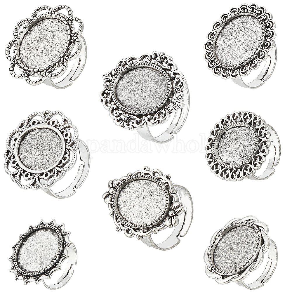 16шт 8 стиль регулируемые сплавные кольца для пальцев компоненты, настройки кольца чашки безеля, цветок, овал и солнце