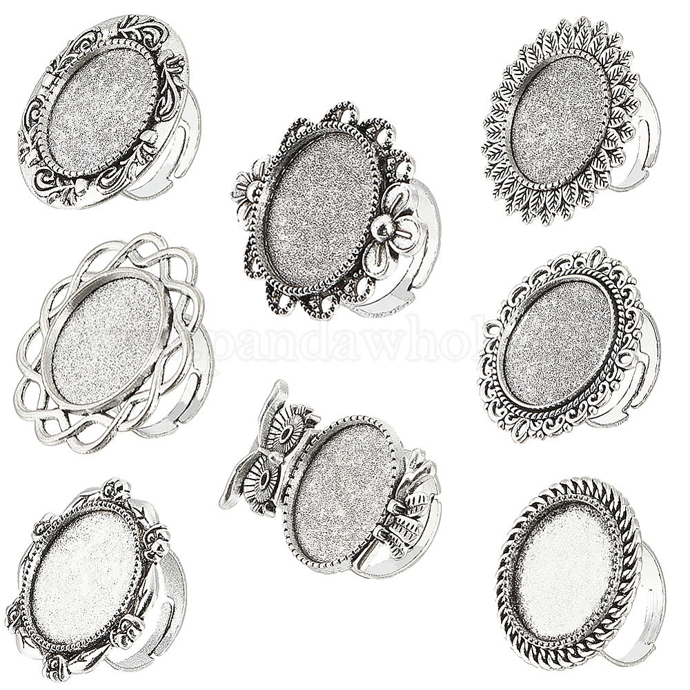 16шт 8 стиль регулируемые сплавные кольца для пальцев компоненты, настройки кольца чашки безеля, цветок, сова и плоский круглый
