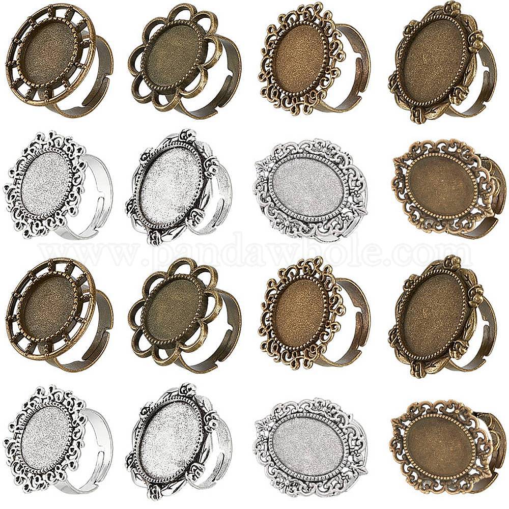 16шт 8 стиль регулируемые сплавные кольца для пальцев компоненты, настройки кольца чашки безеля, цветок и плоский круг