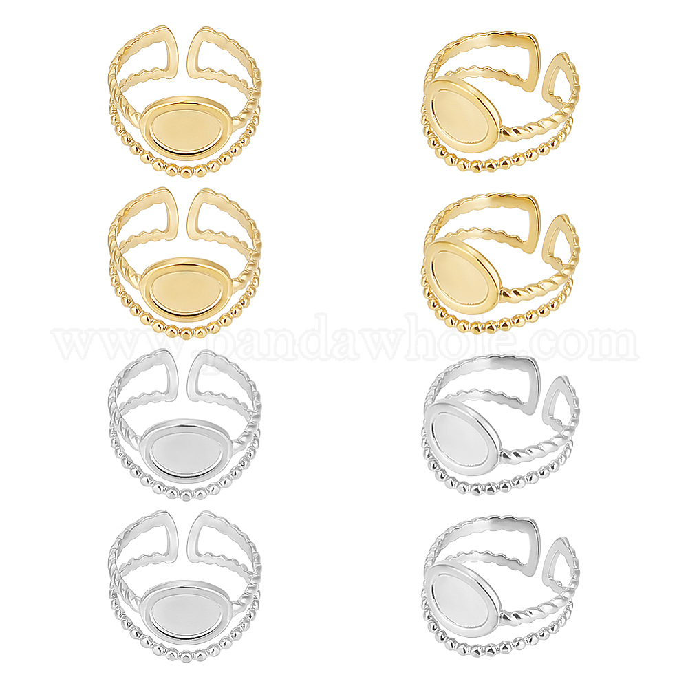 8 шт. 2 цвета 304 компоненты открытого манжетного кольца из нержавеющей стали, настройки кольца чашки безеля, овальные