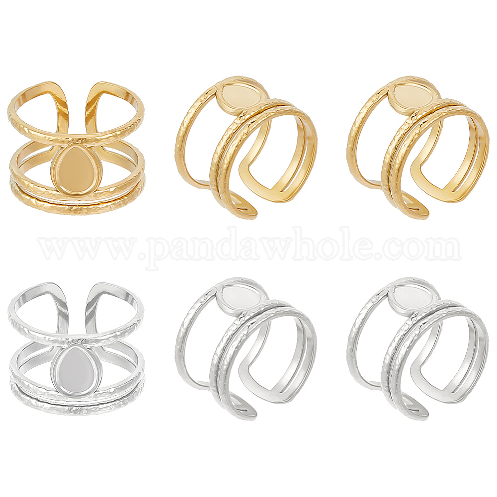 6 шт. 2 цвета 304 компоненты открытого манжетного кольца из нержавеющей стали, настройки кольца чашки безеля, слеза